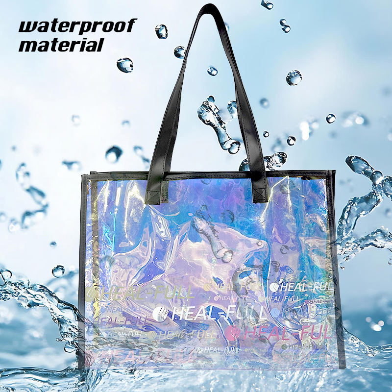 ถุงผ้าพีวีซีกันน้ำมีสีรุ้งโฮโลแกรมเลเซอร์ของขวัญโลโก้ตามสั่งแฟชั่น