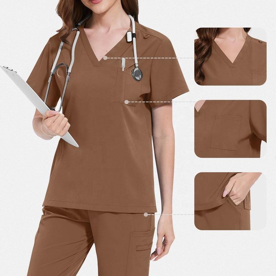 ชุดยูนิฟอร์มพยาบาลแบบสวมใส่สบาย แห้งเร็ว ทันสมัย ปรับแต่งได้ ชุดสครับสำหรับแพทย์ พยาบาล ชุดทำงานโรงพยาบาลสำหรับผู้หญิง เสื้อและกางเกง