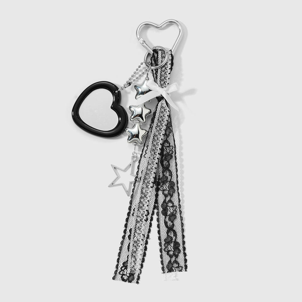 พวงกุญแจตุ๊กตาหมีปักลายสีเข้มทันสมัย พร้อมกระจกทรงหัวใจ ลูกปัดรูปดาว พู่ลูกไม้ จี้ใบเมเปิล พลาสติกแบบปรับแต่งได้