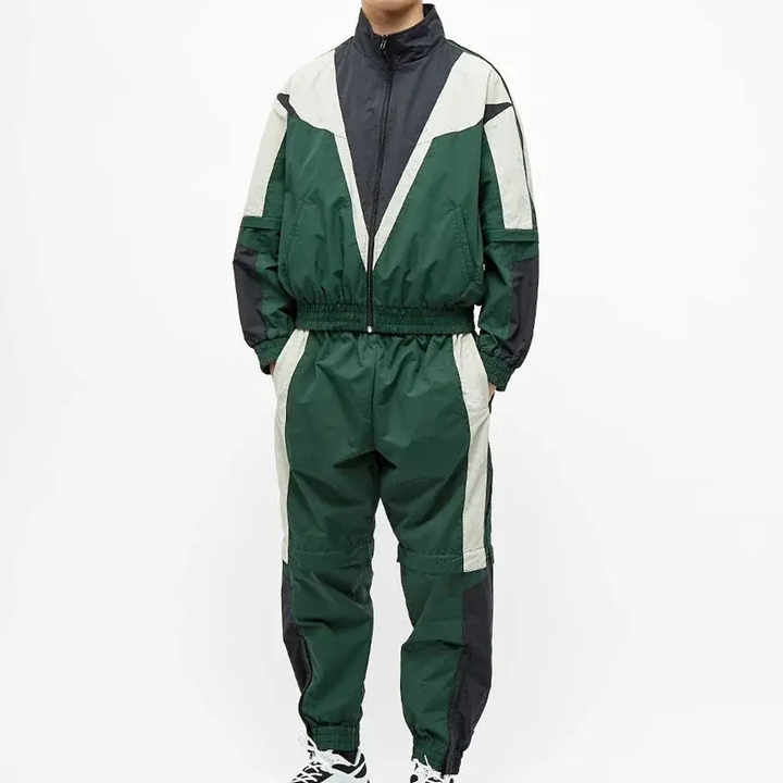 ชุดเซ็ตสองชิ้นสำหรับผู้ชาย เสื้อแจ็คเก็ตกันลมแบบมีฮู้ดผ้าไนลอน/โพลีเอสเตอร์พิมพ์โลโก้ตามสั่ง ดีไซน์ทันสมัย พร้อมกางเกงจ็อกเกอร์