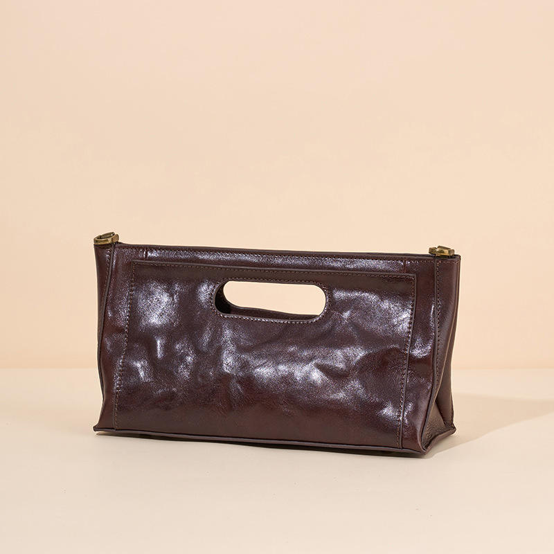 กระเป๋าถือหนังแท้ดีไซน์ทันสมัยสไตล์เรโทรสุดหรูสำหรับผู้หญิง กระเป๋าสะพายไหล่แบบมินิมอลลำลองสะพายข้าง