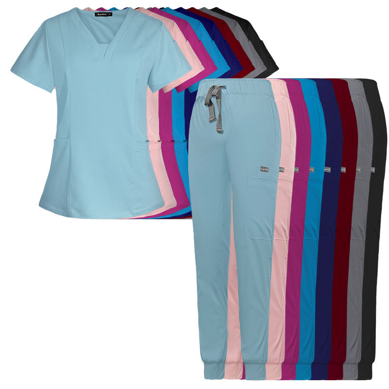 ชุดยูนิฟอร์มผ่าตัดผ้าโพลีเอสเตอร์/ เรยอน/ผ้าสแปนเด็กซ์ดีไซน์ทันสมัย