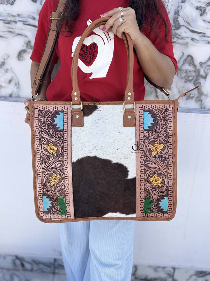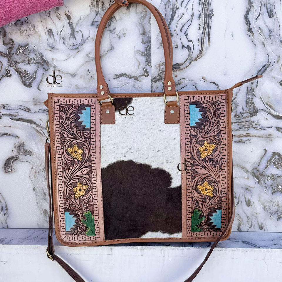 กระเป๋าโท้ทหนังแกะสลักลายด้วยมือ ดีไซน์ทันสมัย กระเป๋าถือหนังเก๋ไก๋ หนังวัวแท้ ขนสัตว์ สำหรับผู้หญิง ใช้งานได้หลากหลาย