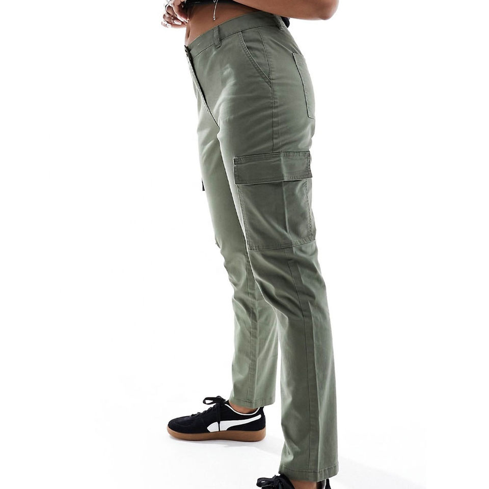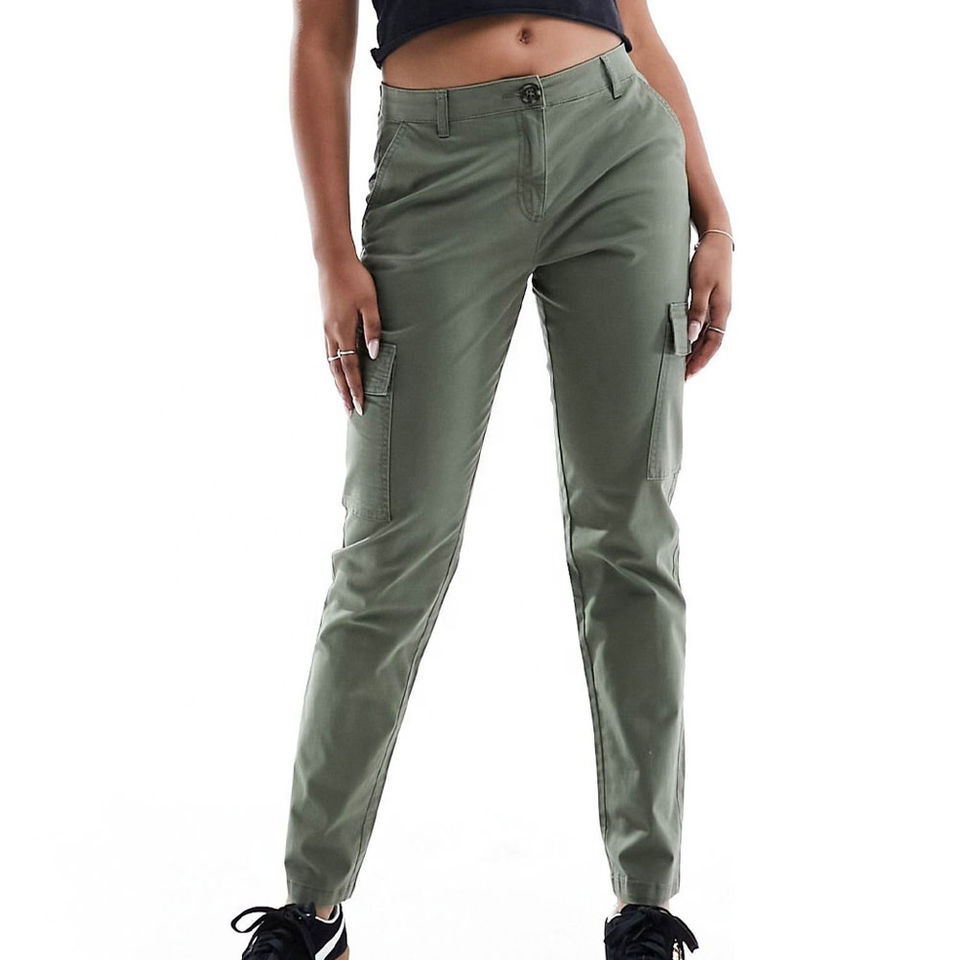 กางเกงคาร์โก้ผ้าแคนวาสเอวกลาง แฟชั่น ทนทาน กันน้ำ แห้งเร็ว เหมาะสำหรับกิจกรรมกลางแจ้ง ใช้งานได้หลากหลายสำหรับผู้หญิง