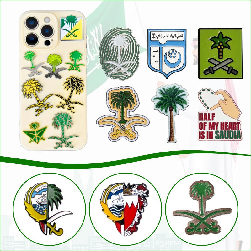 เข็มกลัดโทรศัพท์เคลือบผิวทันสมัยเป็นมิตรกับสิ่งแวดล้อม ดีไซน์ตราสัญลักษณ์ที่ไม่ซ้ำใคร พร้อมธงชาติตะวันออกกลาง สีสันปรับแต่งได้ทุกวัน