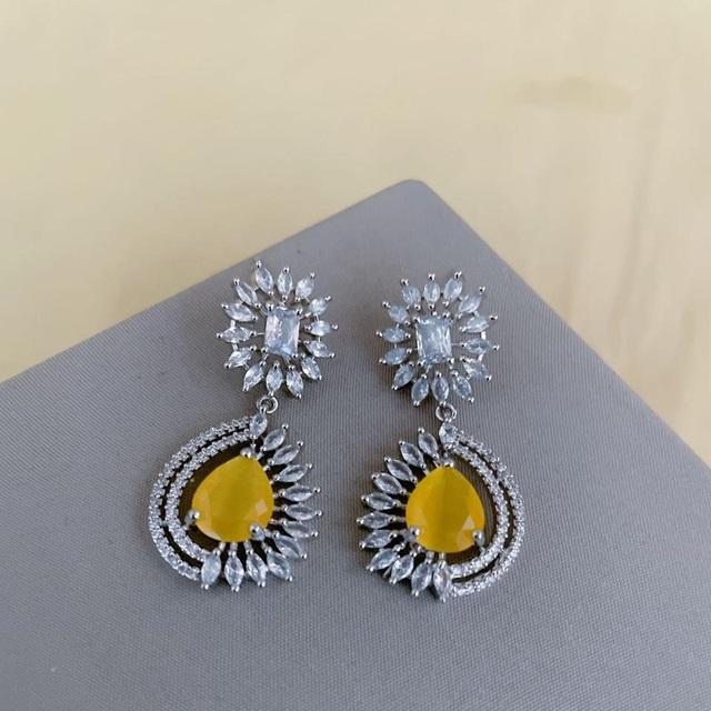 ต่างหูแฟชั่นแบบยาวหรูหราพร้อมหินเพทายเครื่องประดับสำหรับงานแต่งงานส่วนใหญ่ทำจากทองเหลืองสำหรับเป็นของขวัญ