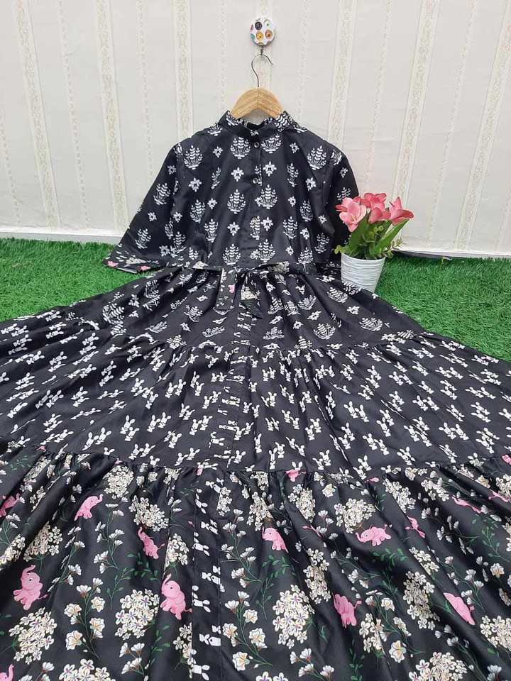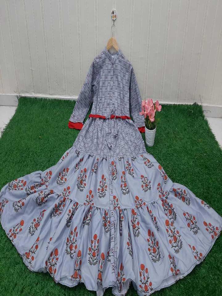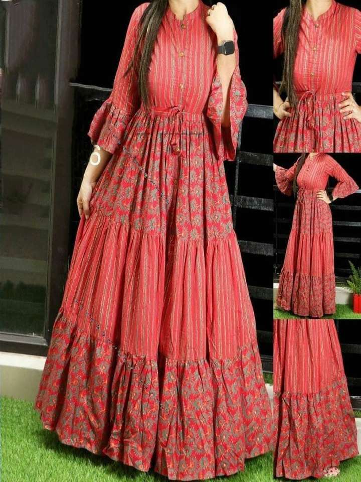 Fashionable Festival Wear Cotton Rayon Printed Long Gown Indian Girls Wear Ready to Wear Low Price Wholesale ApparelGarment
