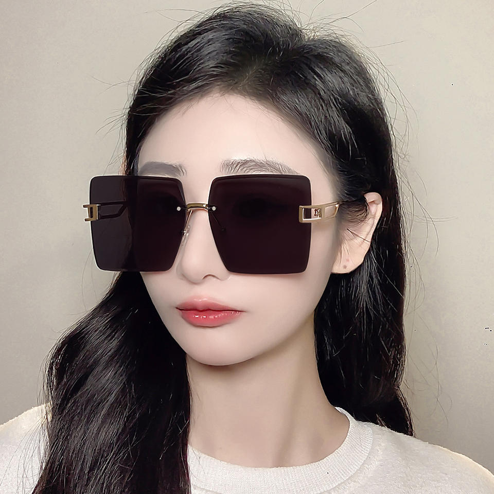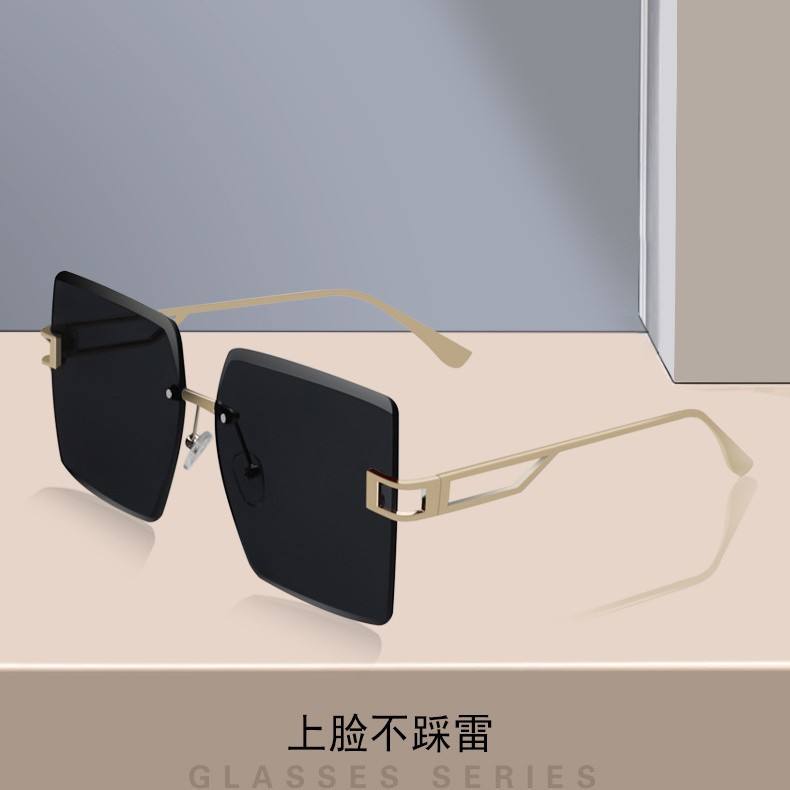แว่นกันแดดแฟชั่นไร้กรอบ สีดำโลหะ ป้องกันรังสียูวี 400 สำหรับทุกเพศ ดีไซน์ทรงสี่เหลี่ยมขนาดใหญ่ รุ่นที่ 3 เลนส์ PC รุ่น 801
