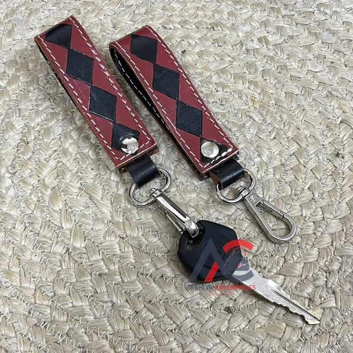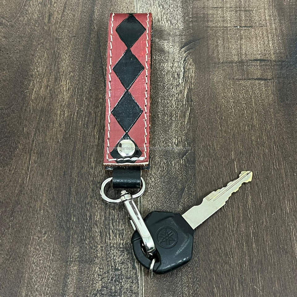 พวงกุญแจหนังลายตารางหมากรุกทำมือ