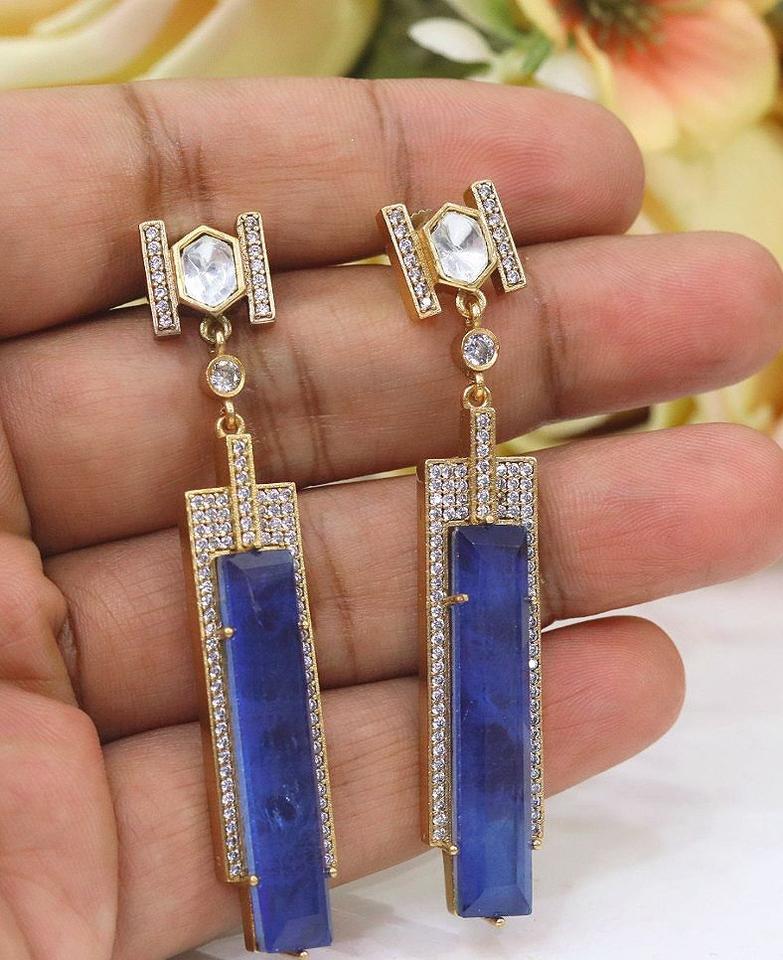 ต่างหูห้อยประดับเพชรซิคอนชุบทองทันสมัยสำหรับผู้หญิง เหมาะสำหรับงานแต่งงานและงานเลี้ยงตอนเย็น