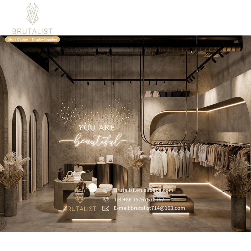 ชั้นวางแสดงร้านขายเสื้อผ้าผู้หญิงตามสั่ง
