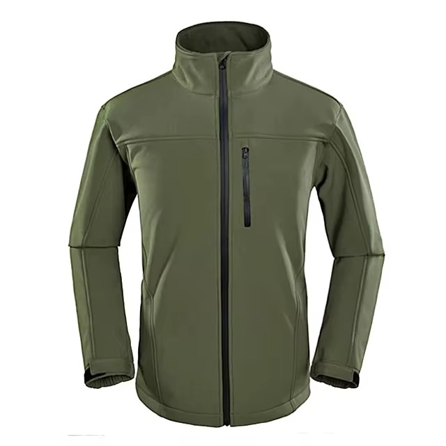 เสื้อแจ็คเก็ตซอฟต์เชลสีเขียวทันสมัย น้ำหนักเบา เหมาะสำหรับเดินป่าและท่องเที่ยว รับผลิตแบบ OEM พร้อมปักโลโก้ กันน้ำ ดีไซน์ทันสมัย สำหรับผู้ชาย