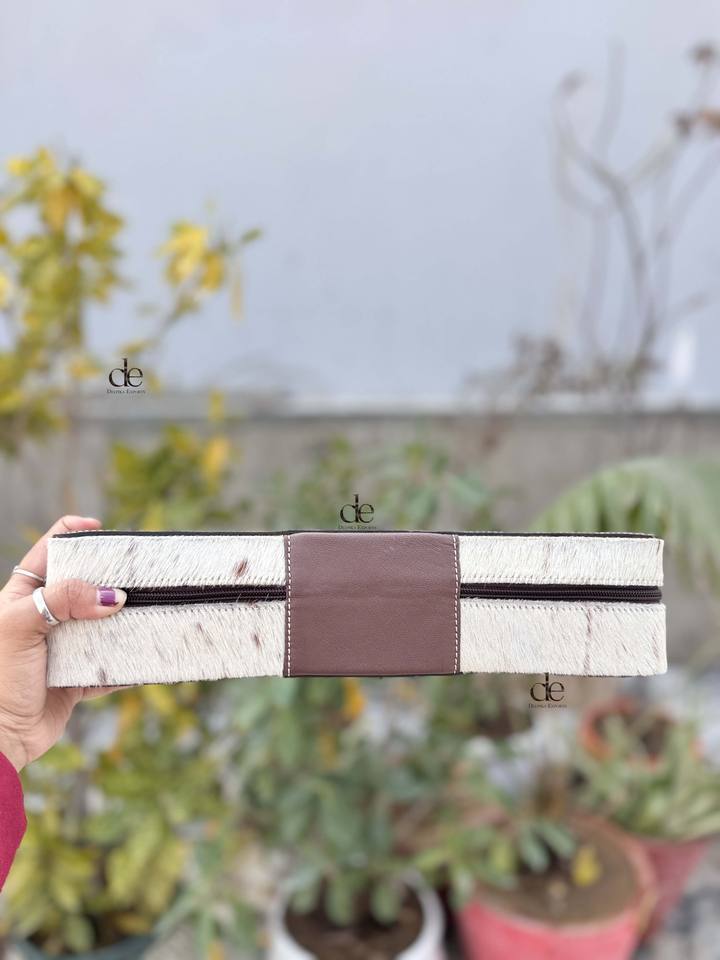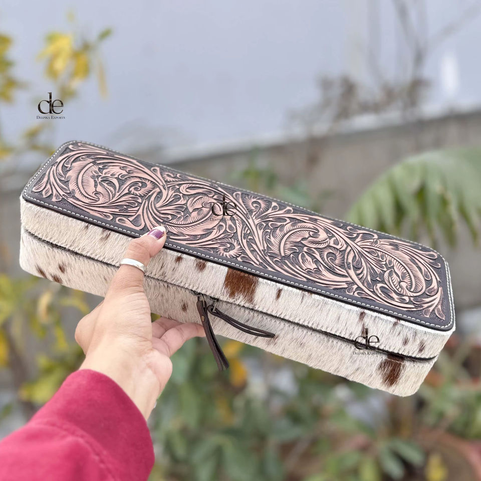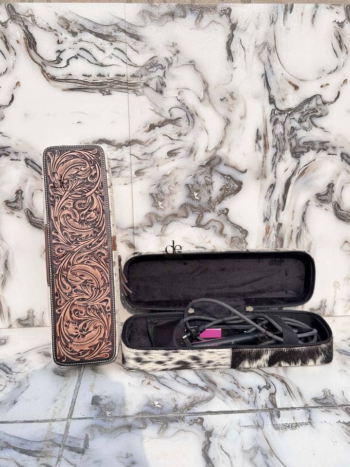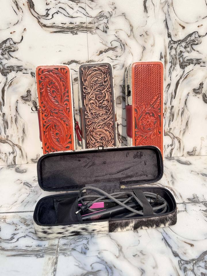 Fashionable Hand Tooled Leather Heat Resistant Curling Iron Case Western Hair On Hide Fur Perfect Organizer for Hair Tools