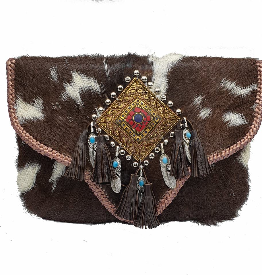 กระเป๋าคลัทช์แฟชั่นที่ทำด้วยมือสีน้ำตาลจริงผู้หญิงกระเป๋าถือมือ
