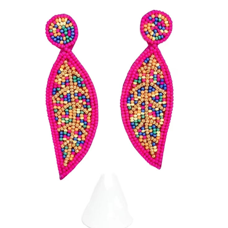 ต่างหูแฟชั่นรูปใบไม้สีรุ้งแบบแฮนด์เมดหลากสีปักลูกปัดสวยงามทันสมัยใช้ได้ทั้งชายและหญิง