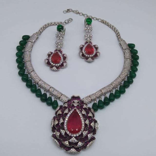ชุดสร้อยคอเพชร Zircon ประดับด้วยต่างหูแฟชั่นคุณภาพสูงสีเงินคุณภาพสูงพร้อมต่างหูคอลเลกชั่นสำหรับผู้หญิง