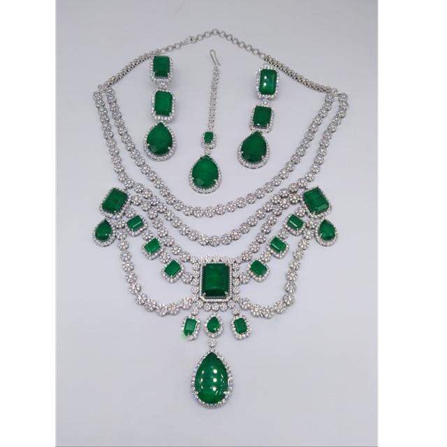 ชุดสร้อยคอเพชรสวิสแบบคู่ทำจากเงินคุณภาพดีทันสมัยพร้อมต่างหูคอลเลกชันชุดปาร์ตี้ Tikka สำหรับผู้หญิง