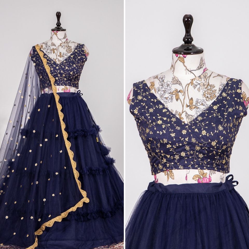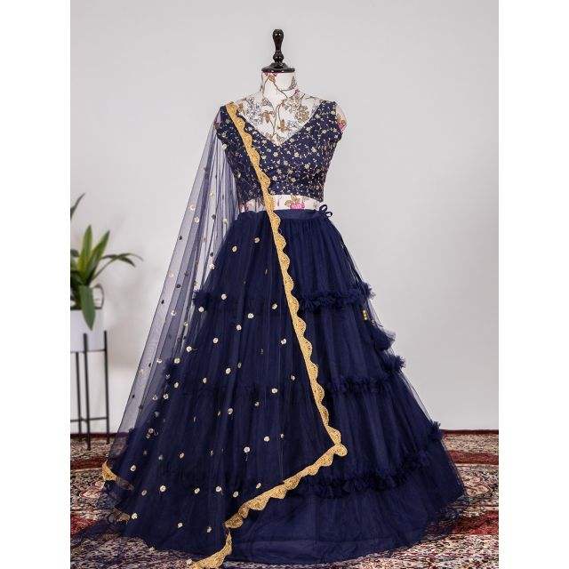 Product Name:Indian Traditional Navy Blue Color Net Lehenga Choli