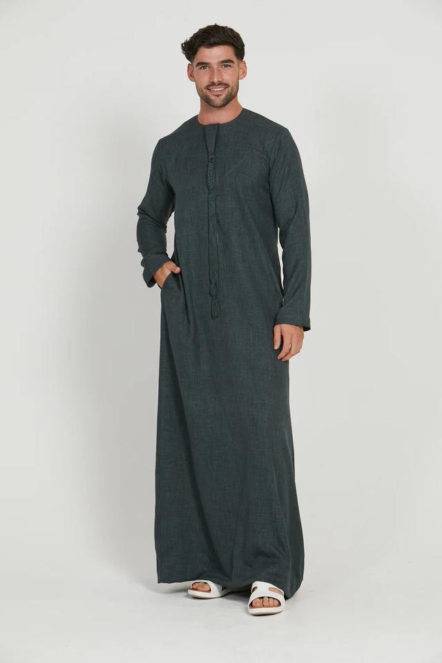 Thobes jubba 100% สูทผู้ชายมุสลิม, เสื้อผ้าแฟชั่นอิสลามชุดยาวสีเข้ม