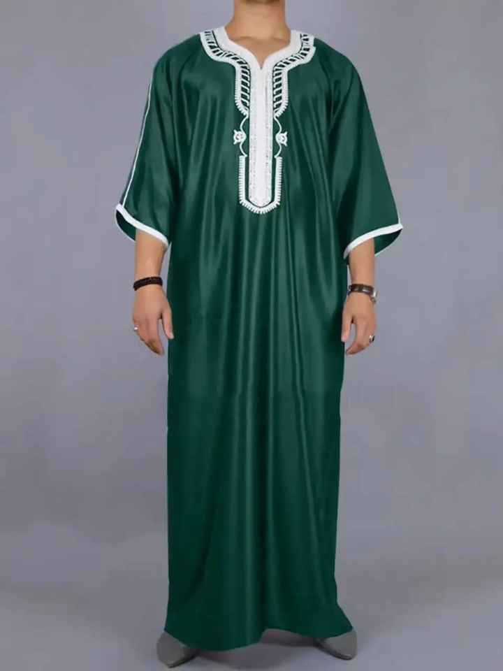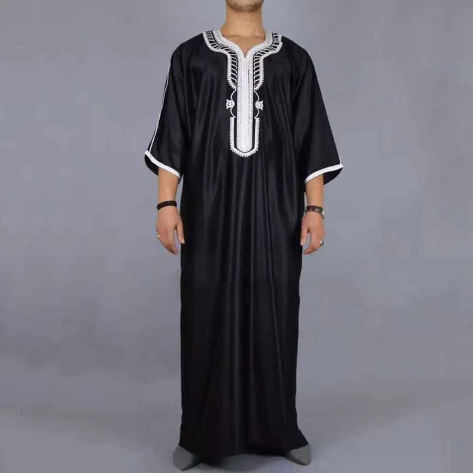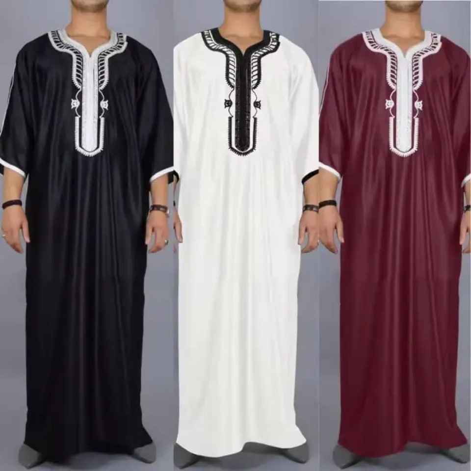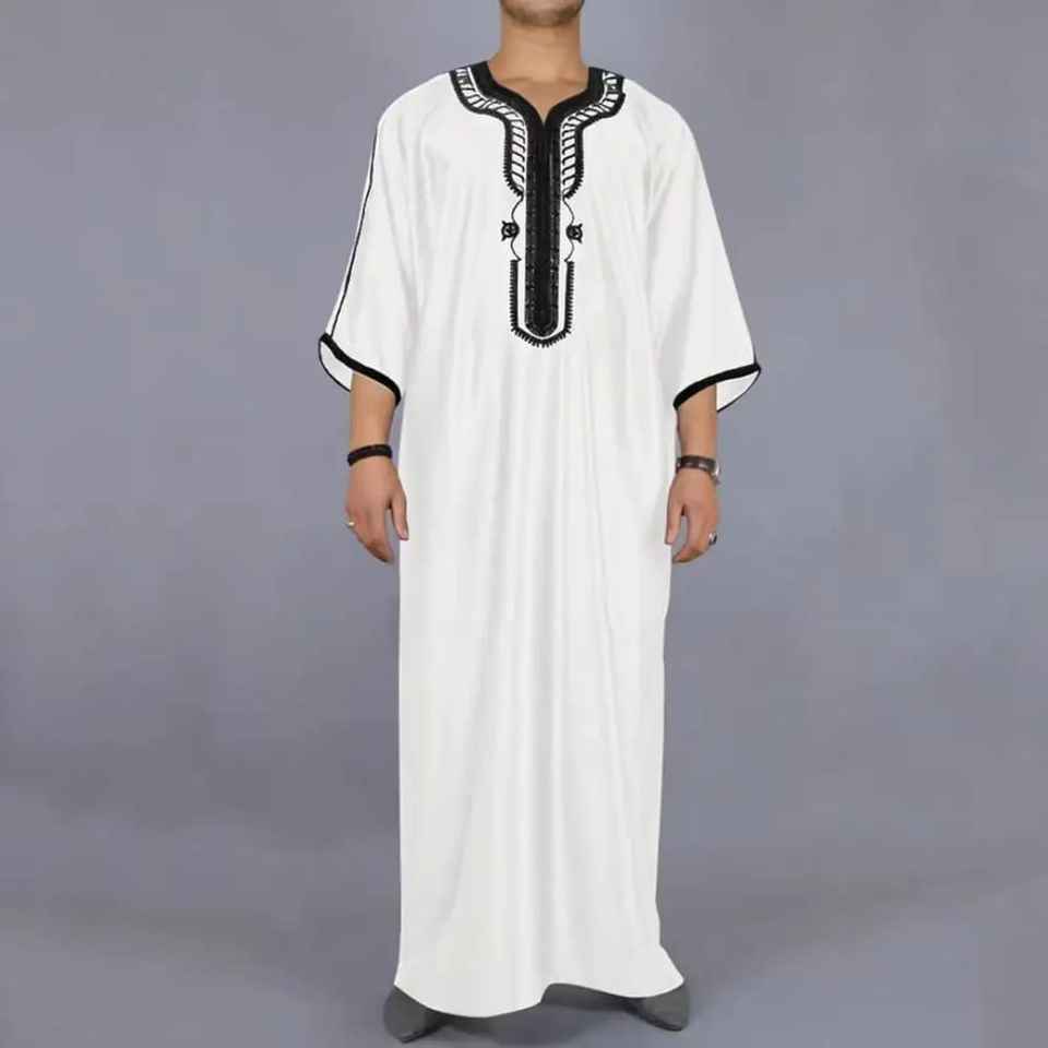 ชุดโทบแบบลำลองประดับลูกปัดสำหรับผู้ชายมุสลิมทันสมัย ผ้าโพลีเอสเตอร์ 100% ความยาวระดับข้อเท้า น้ำหนักเบา ระบายอากาศได้ดี เหมาะสำหรับเดือนรอมฎอนและวันอีด