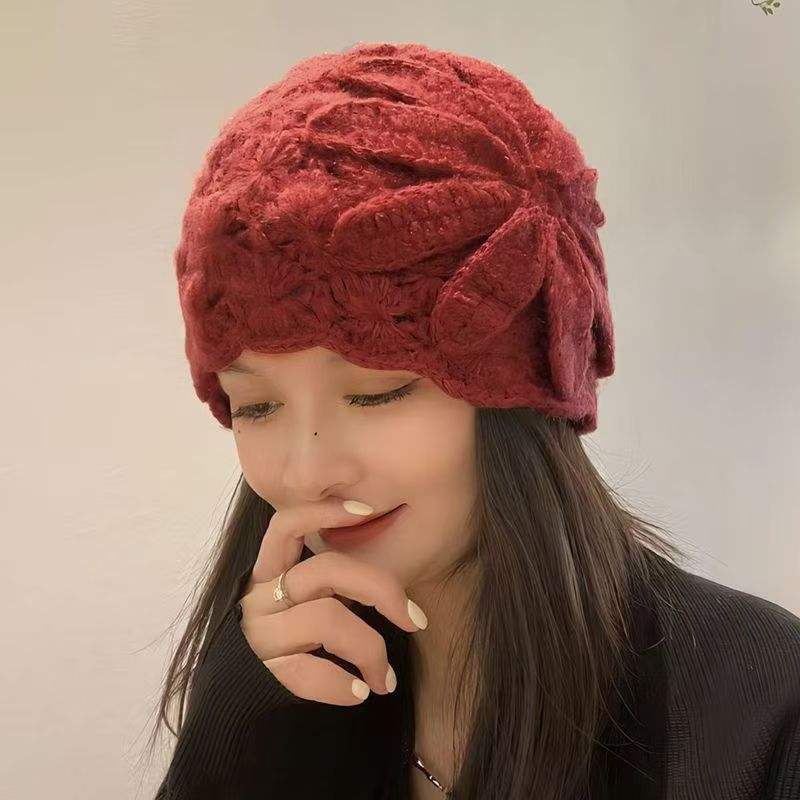 ชื่อผลิตภัณฑ์:หมวกขนสัตว์ถักแบบย้อนยุคหมวกแฟชั่นลายดอกไม้ลูกไม้