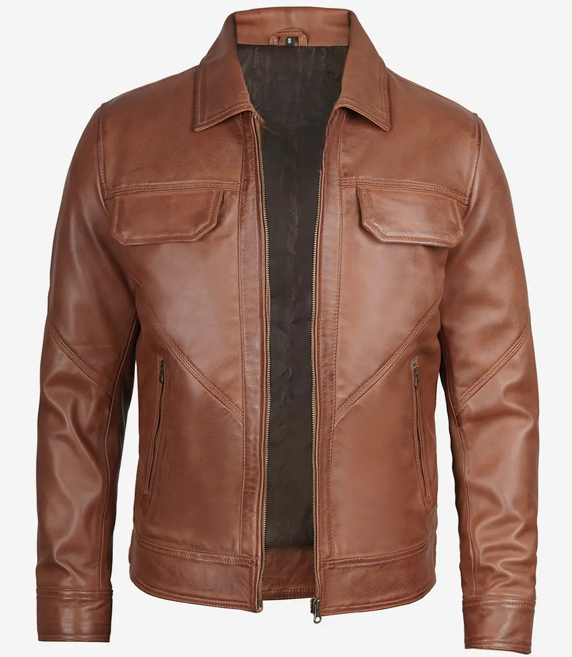แจ็คเก็ตหนังแฟชั่นผู้ชายสไตล์ล่าสุด แจ็คเก็ตหนังแฟชั่นฤดูหนาว อุ่นสบายสำหรับใส่เป็นเสื้อนอก หนังแกะสีน้ำตาล
