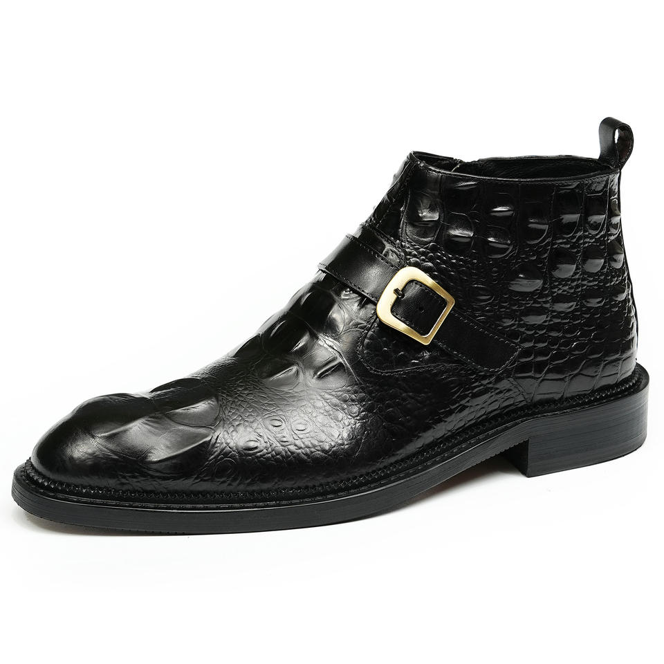 รองเท้าบูทหนังแฟชั่นทรงกลางน่อง พร้อมหัวเข็มขัด ดีไซน์น้ำหนักเบา เหมาะสำหรับใส่ในฤดูหนาวและเป็นรองเท้าสำหรับงานปาร์ตี้