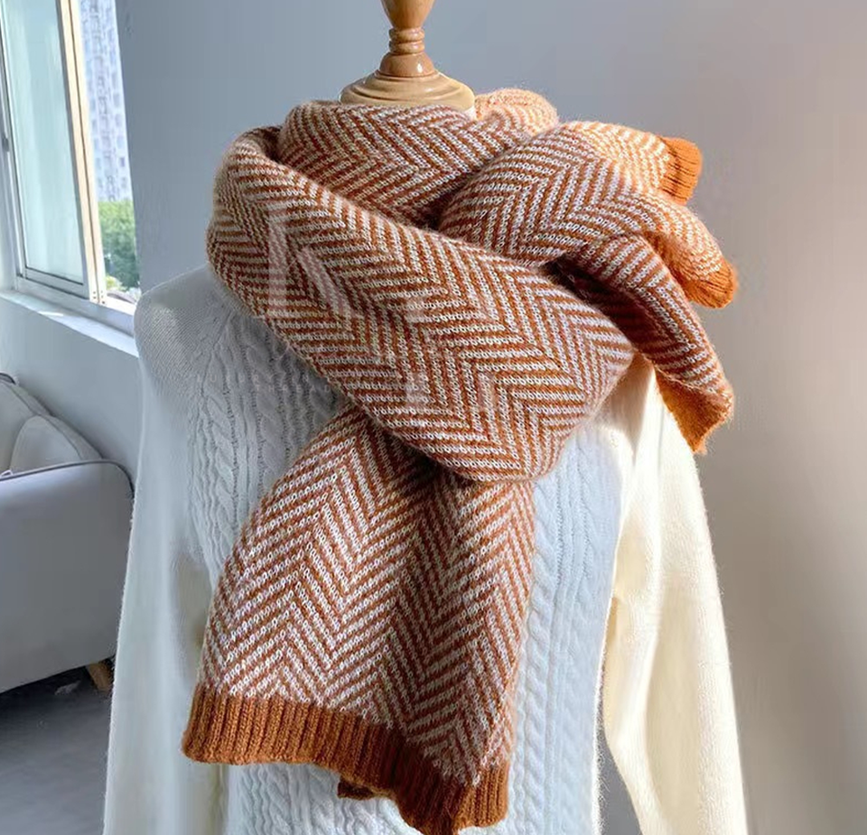 ผ้าพันคอแฟชั่นยาวน้ำหนักเบาสำหรับฤดูหนาวสำหรับผู้หญิงผ้าวูลเนื้อนุ่มผสมผ้าถักลายแวววาวอุปกรณ์เสริมหรูหรากลางแจ้ง