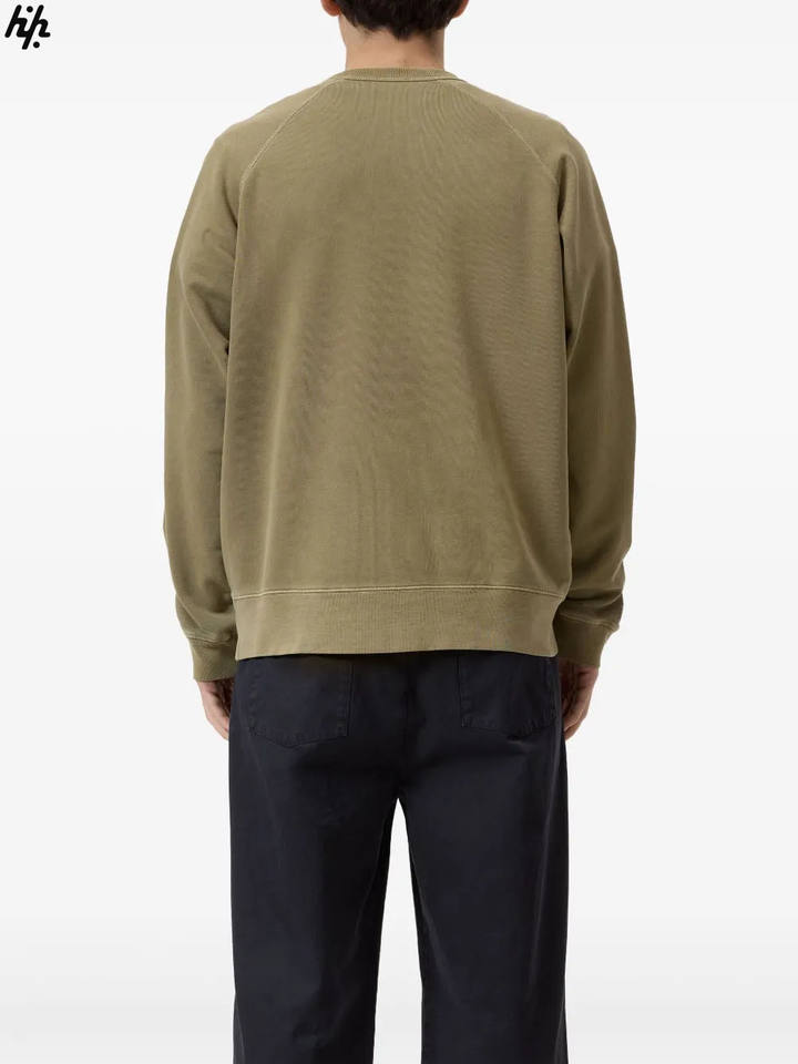 เสื้อสเวตเตอร์คอกลมแขนยาวสำหรับผู้ชายทรงหลวมแฟชั่นสวมใส่ได้พอดีกับผ้าเนื้อนุ่มสวมใส่ได้พอดีตัวสไตล์วินเทจฟอกสีมะกอก