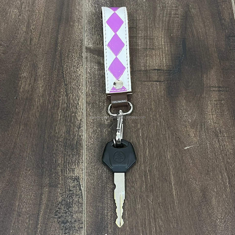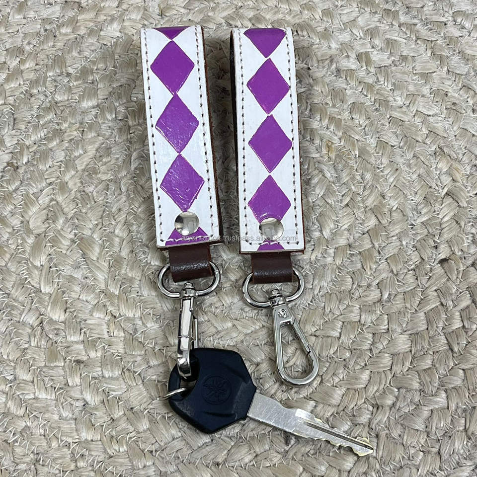 พวงกุญแจหนังวัวลายตารางสุดหรู ดีไซน์เก๋ พร้อมสายคล้องคอแบบปรับได้ ตกแต่งลวดลายตามสั่ง สวยงามและเป็นเอกลักษณ์