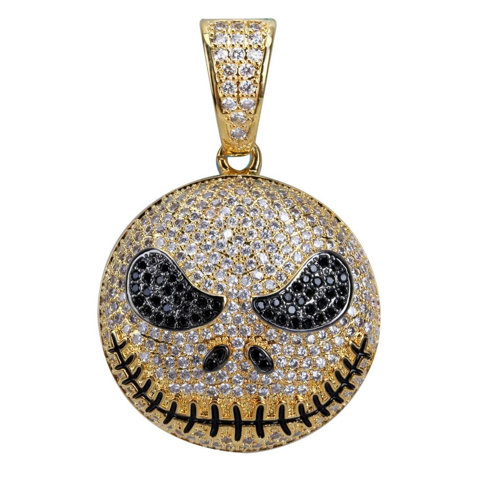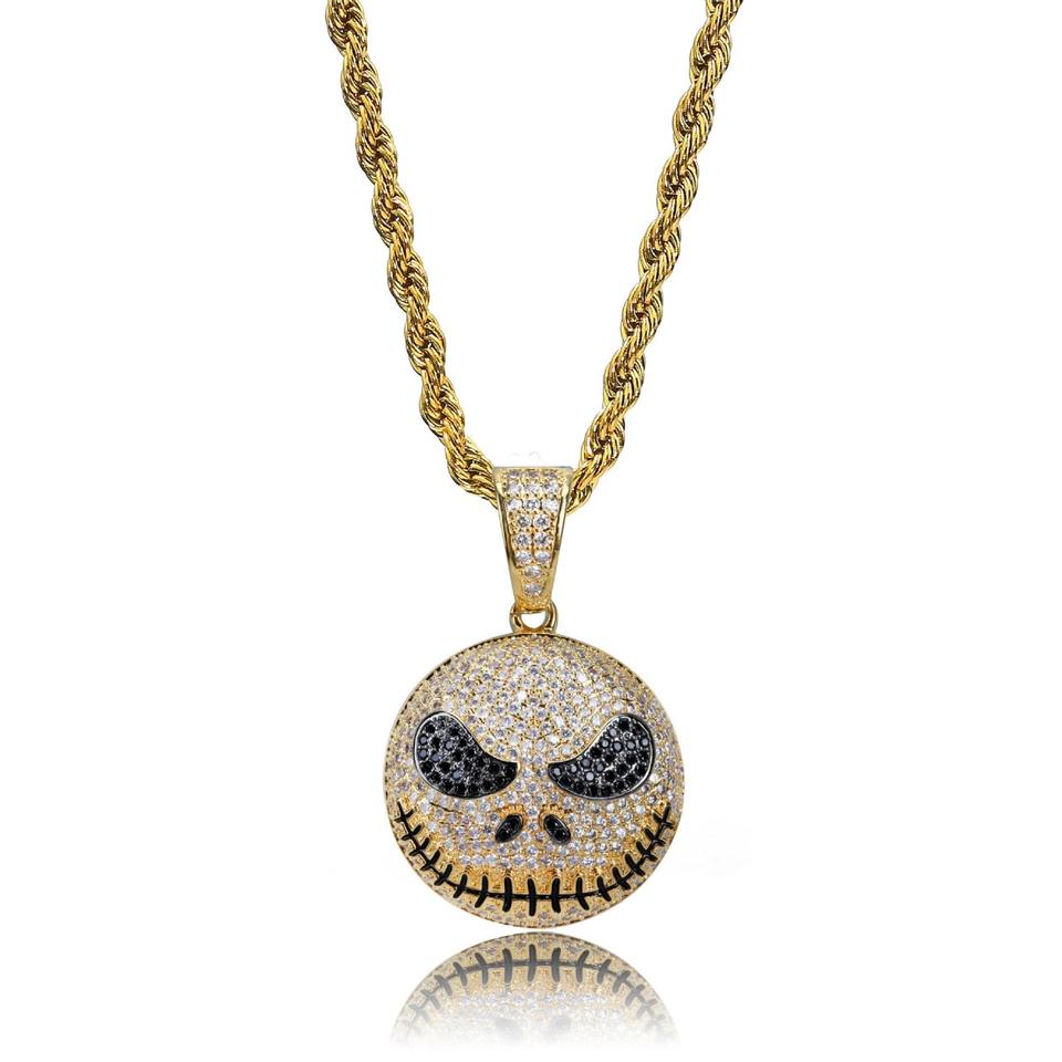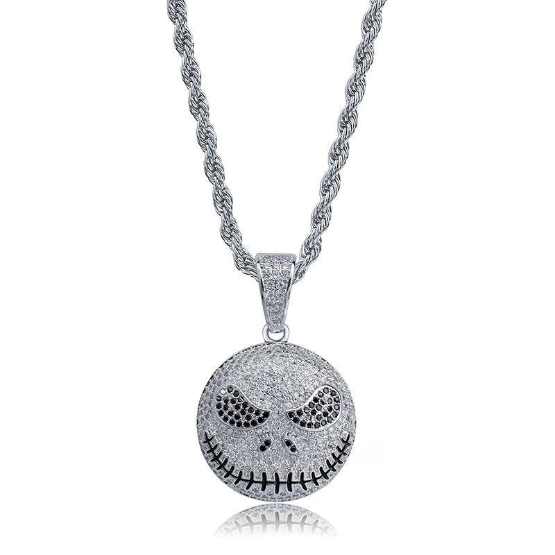 เครื่องประดับหรูหราทันสมัยฝังเพชร จี้รูปหัวกะโหลก สร้อยคอรอยยิ้มอันน่ากลัว คารอน เครื่องประดับฮิปฮอป