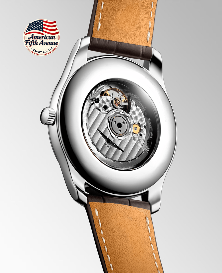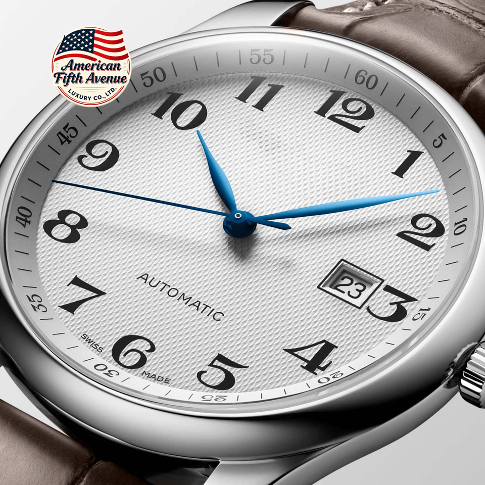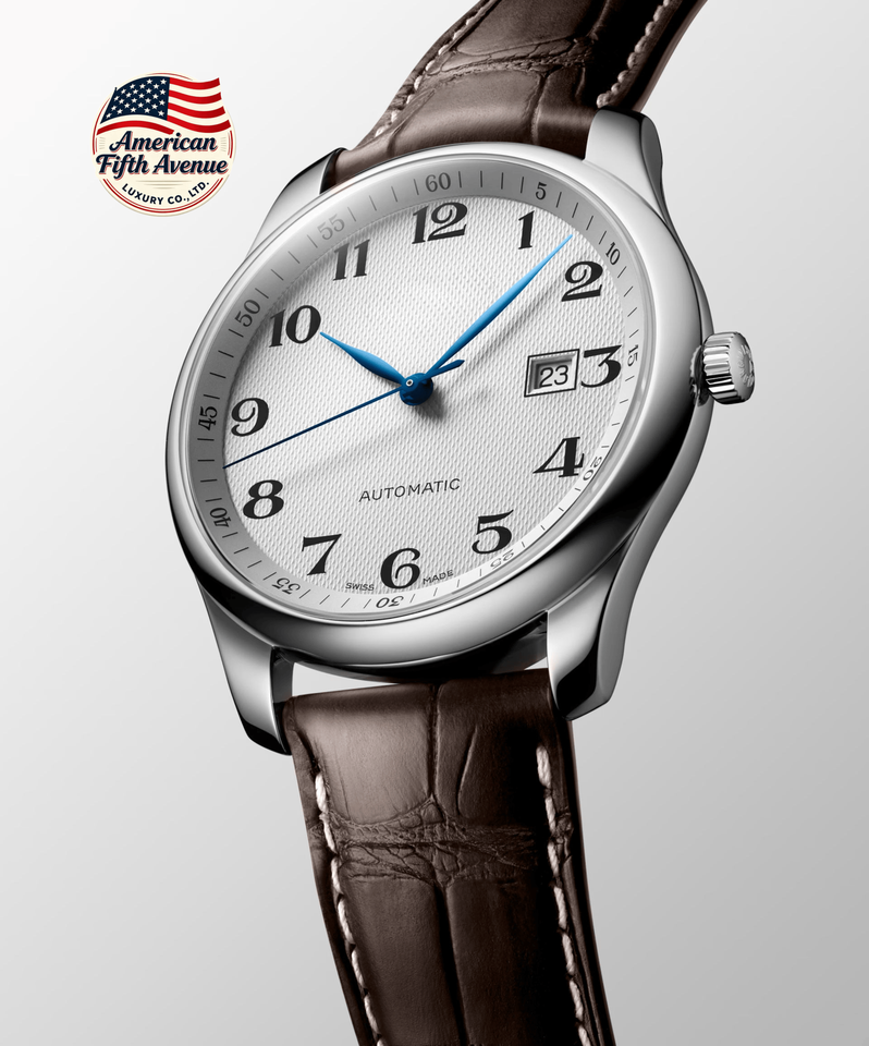นาฬิกาข้อมือผู้ชายสุดหรูทันสมัย ตัวเรือนสแตนเลส สายหนังแท้ หน้าปัดตัวเลขแบบอารบิก ระบบจักรกล พร้อมระบบสำรองพลังงาน