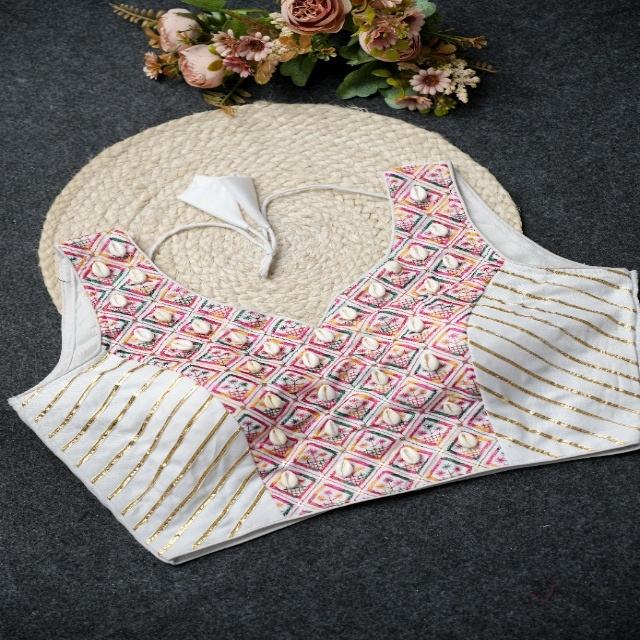 Product Name:Fashionable Magic Cotton With Gota Patti And Cowrie Work Blouse