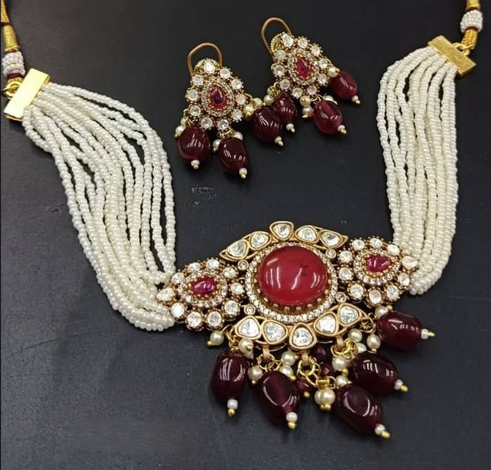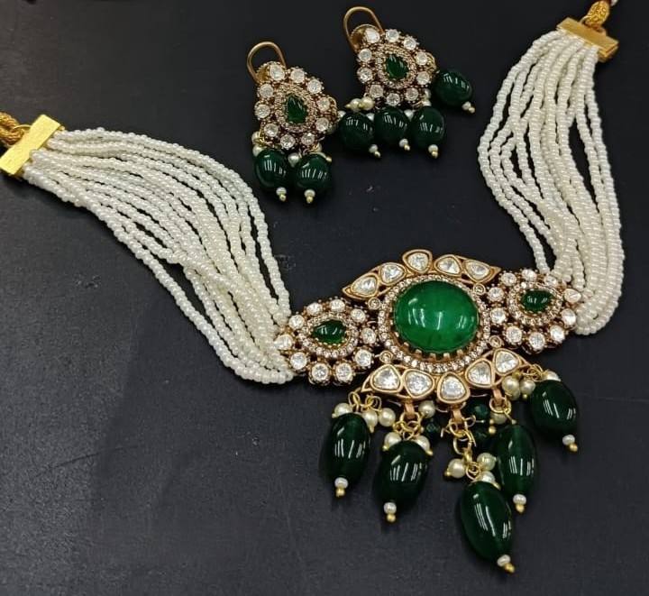 ชุดสร้อยคอ Polki Kundan แฟชั่นชุดต่างหูเครื่องประดับทันสมัยสำหรับงานแต่งงานและงานเฉลิมฉลองครบรอบ