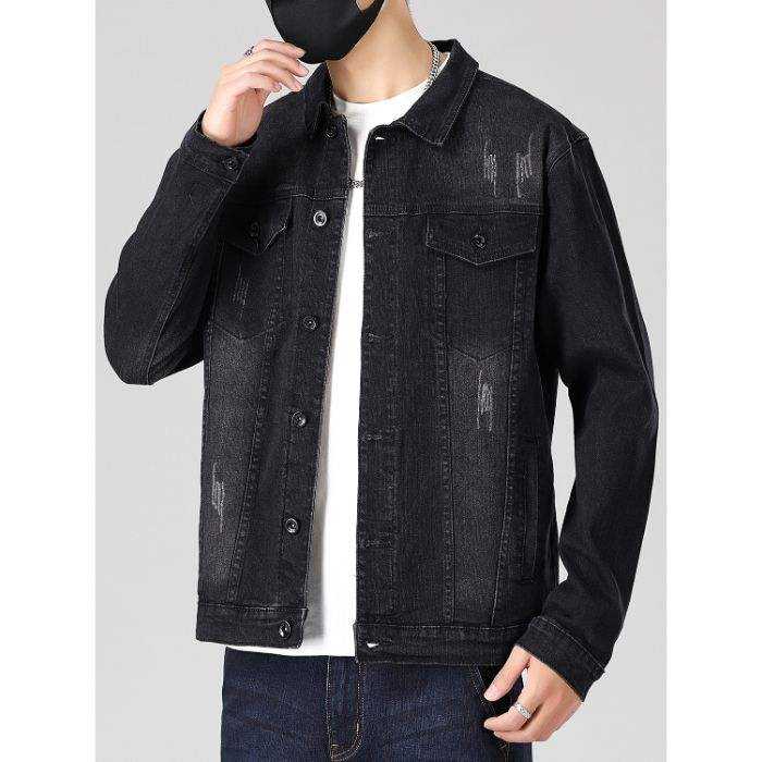 แจ็กเก็ตผ้ายีนส์ของผู้ชายที่ทันสมัยพอดีกับเสื้อผ้าแนวสตรีทแบบลำลองดูทนทานสวมใส่สบายและมีสไตล์
