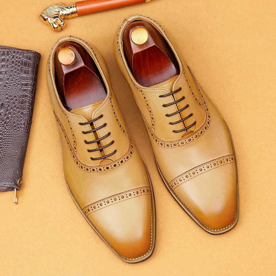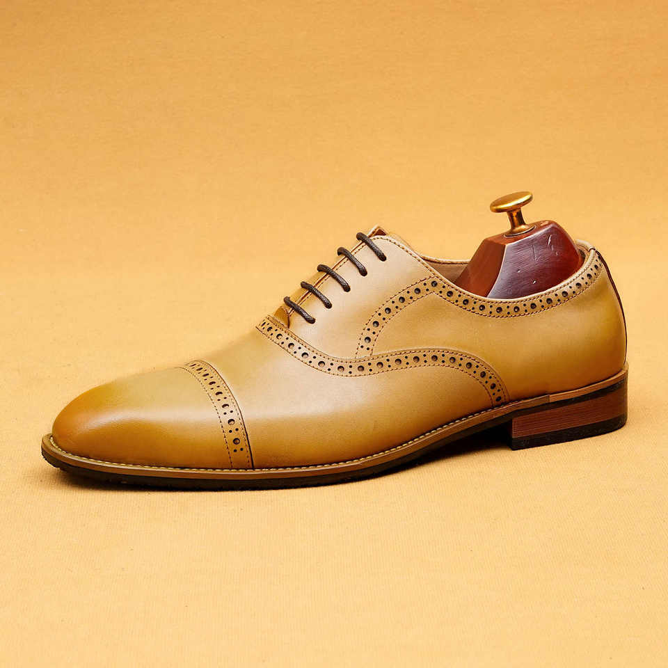 รองเท้าอ็อกซ์ฟอร์ดหนังแท้ทำมือสำหรับผู้ชาย ดีไซน์ทันสมัย กันน้ำ พื้นรองเท้าด้านในทำจากยาง ระบายอากาศได้ดีและน้ำหนักเบา