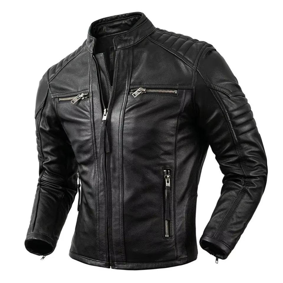 แจ็กเก็ตหนังแฟชั่นสำหรับผู้ชายแจ็คเก็ตหนังสำหรับฤดูหนาวระบายอากาศได้ดีปรับแต่งได้ตามต้องการ