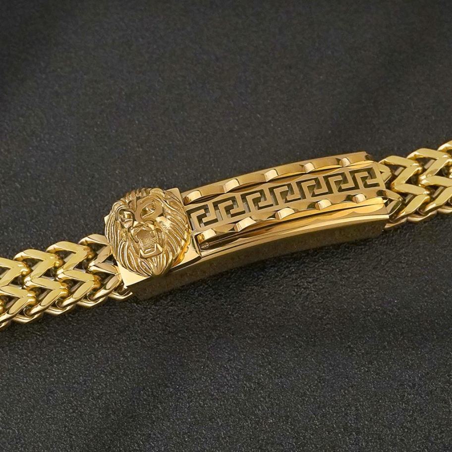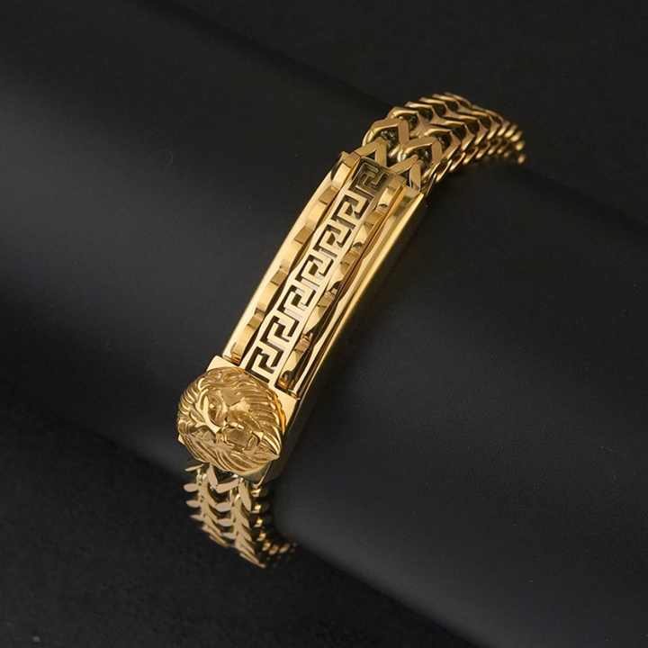 สร้อยข้อมือสแตนเลสสตีลผู้ชายแฟชั่น ดีไซน์หัวสิงโต สไตล์เรโทร เรียบง่าย ทันสมัย