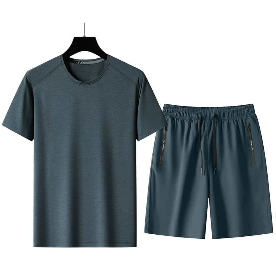 ชุดเสื้อยืดแขนสั้นแฟชั่นสำหรับผู้ชายชุดกางเกงขาสั้นผ้าคอตตอนระบายอากาศได้ดีสวมใส่สบาย