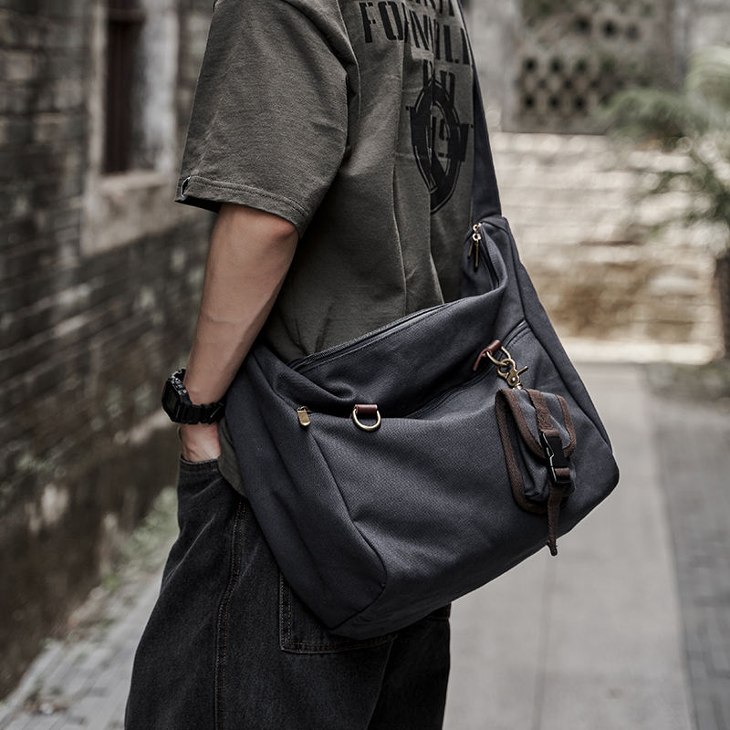 Fashionable Men's Waterproof Canvas Messenger Bag Custom Logo Large Size Outdoor Worker Crossbody Bags Unisex Summer Spring