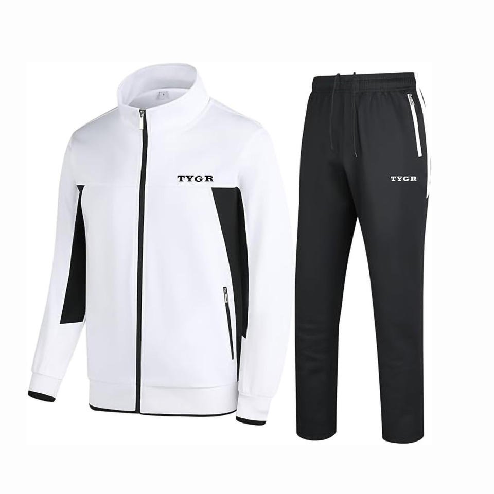 ชุดวอร์มแฟชั่นสำหรับผู้ชายเนื้อผ้ายืดมีซิปหน้ามีกระเป๋าด้านหน้าและกางเกงสำหรับออกกำลังกายและวิ่งออกกำลังกาย
