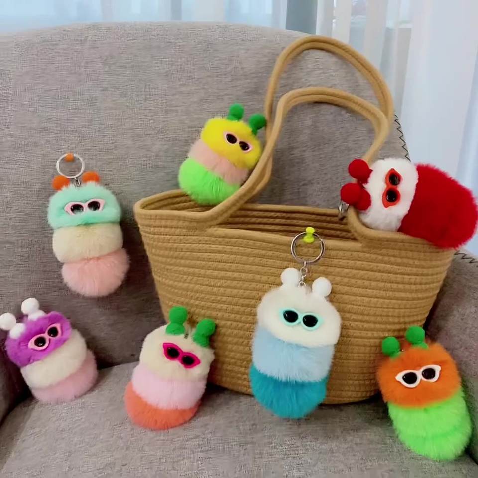 พวงกุญแจหนอนน้อยน่ารักทันสมัย ของเล่นตุ๊กตาการ์ตูน จี้กระเป๋า พวงกุญแจรถยนต์สุดสร้างสรรค์