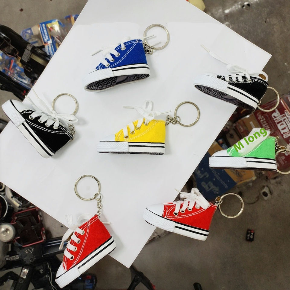 รองเท้าผ้าใบมินิแฟชั่นใหม่ จี้รองเท้าผ้าใบขนาดเล็กสำหรับจักรยานและมอเตอร์ไซค์ พวงกุญแจรูปรองเท้าจำลอง รับประกัน 1 ปี