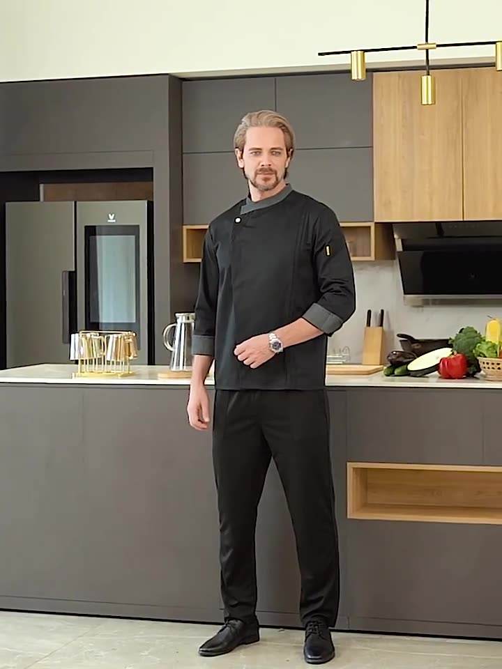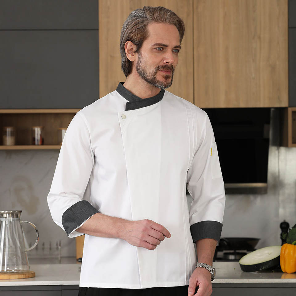 เสื้อเชฟของโรงแรมแขนสามส่วนสไตล์แฟชั่นใหม่ชุดยูนิฟอร์มซับเหงื่อสำหรับร้านอาหารบาร์