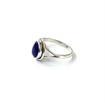 แหวนรูปทรงหยดน้ำประดับพลอยลาพิส คาโบชอง ทำจากเงินแท้ 925 และพลอยธรรมชาติ เหมาะสำหรับสวมใส่ทุกวันในทุกโอกาส
