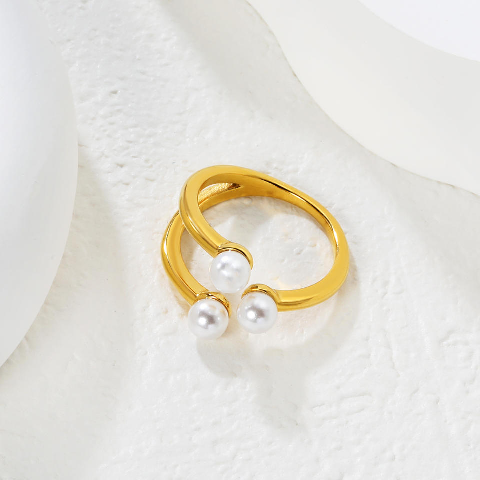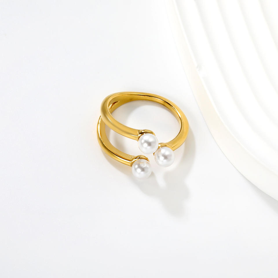 แหวนสเตนเลสสตีลหรูหราสำหรับผู้หญิงแหวนแฟชั่นแบบเปิดพร้อมฝังมุกเทียมน้ำหนักเบา