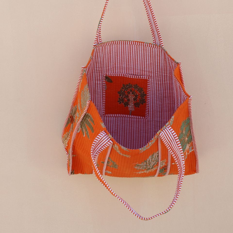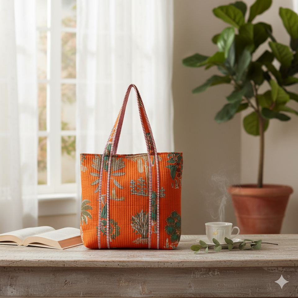 กระเป๋าถือผ้าฝ้าย100% สีส้มที่มีด้ามยาวและเป็นแรงบันดาลใจจากธรรมชาติกระเป๋าเดินทางและกระเป๋าช้อปปิ้งที่มีน้ำหนักเบา