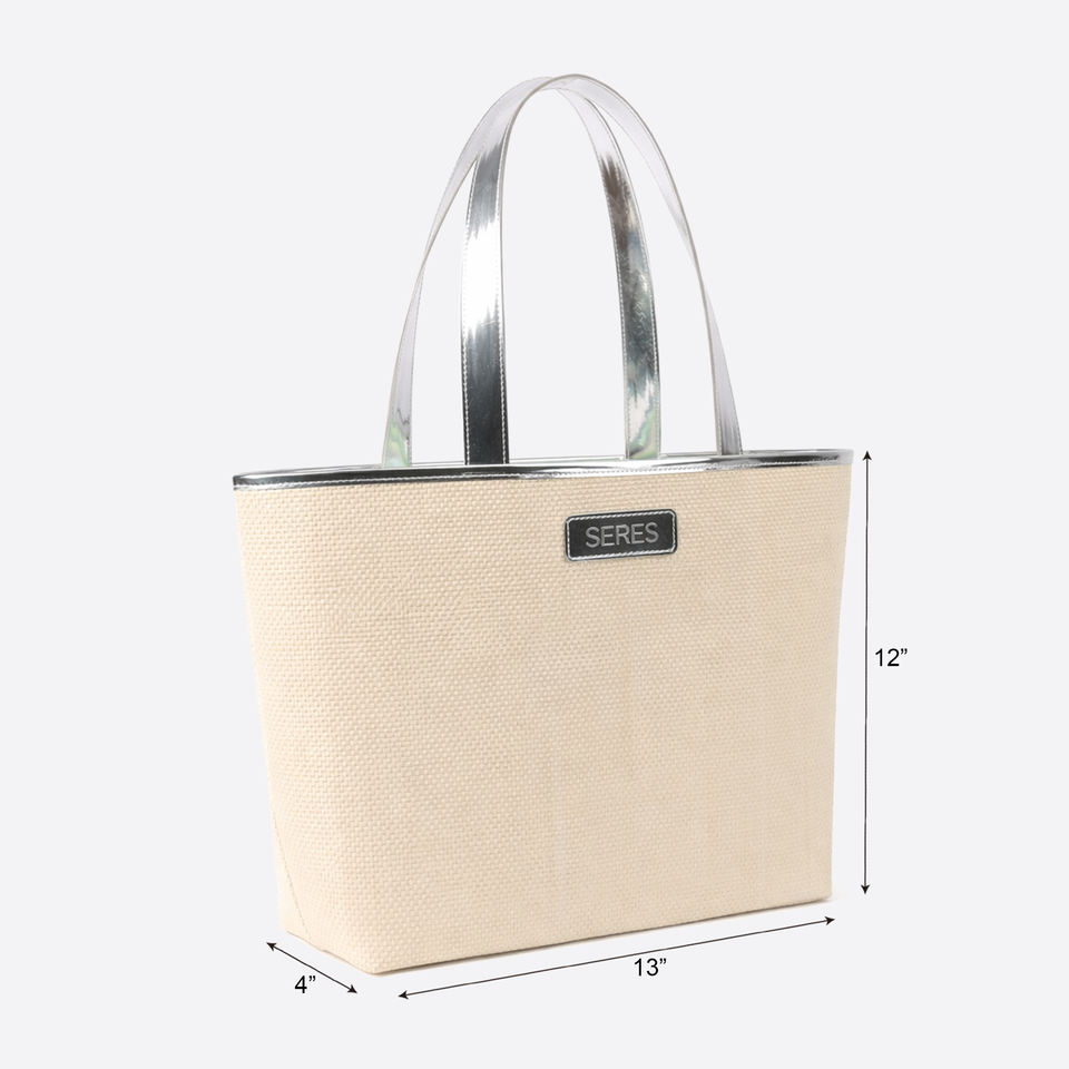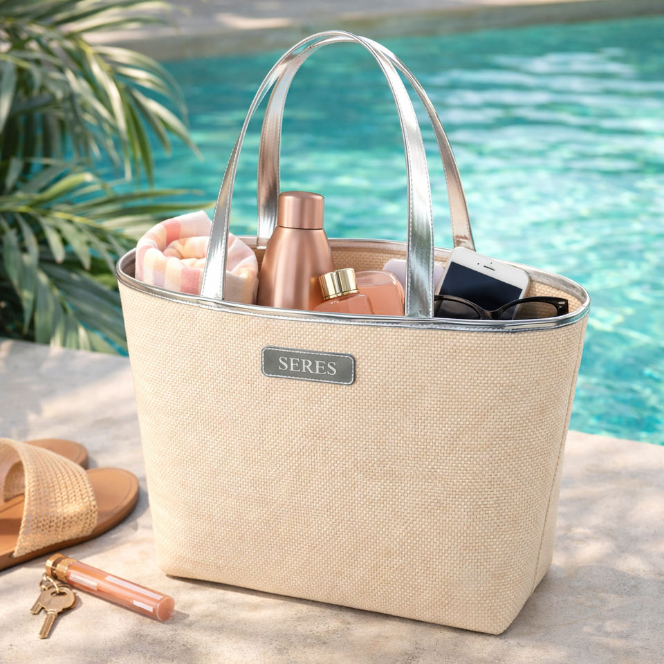กระเป๋าช้อปปิ้งแบบเปิดใช้ซ้ำได้ ทันสมัย ผลิตจากผ้า PP ทอ พร้อมหูหิ้วตกแต่งด้วย PU ใช้งานง่าย พกพาสะดวก ใช้เป็นกระเป๋าเครื่องสำอางได้
