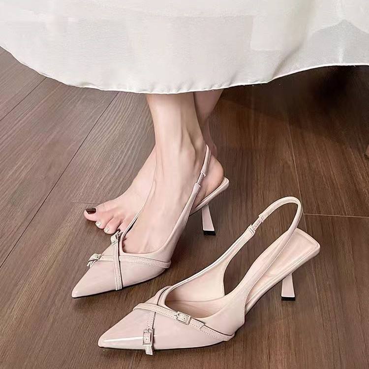 รองเท้าส้นสูงหัวแหลมแฟชั่นใหม่สำหรับผู้หญิงรองเท้าส้นสูงหัวแหลมสำหรับฤดูร้อนรองเท้าส้นเข็มสำหรับผู้หญิงสีดำ