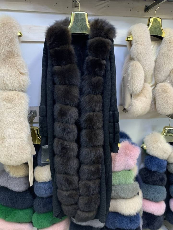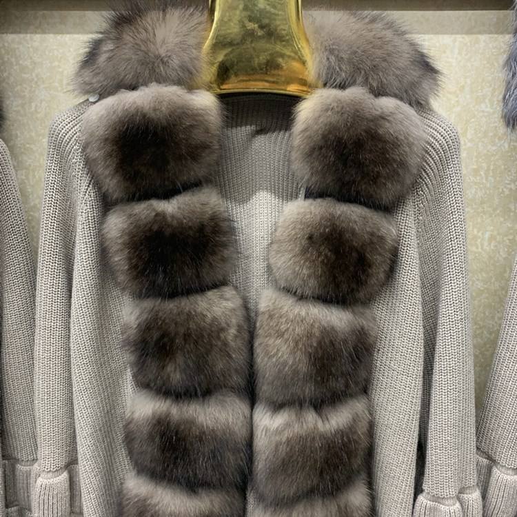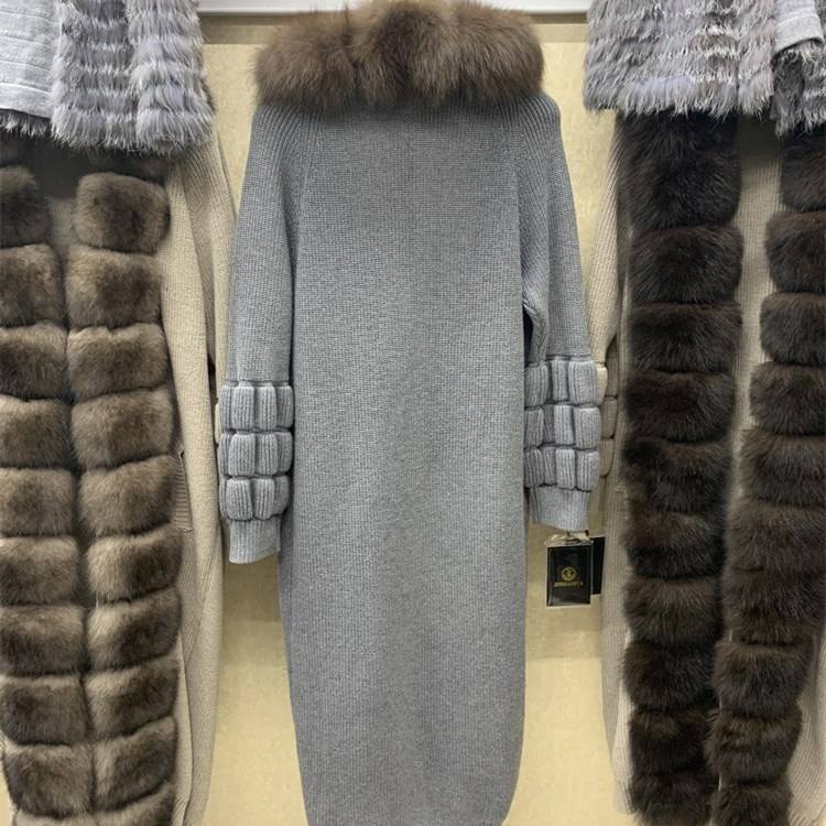 เสื้อโค้ทขนสัตว์แท้แฟชั่น แต่งขอบด้วยขนสัตว์ สำหรับผู้หญิง สไตล์ลำลอง ผ้าขนสัตว์ถัก คาร์ดิแกนขนสุนัขจิ้งจอกยาวสำหรับผู้หญิง